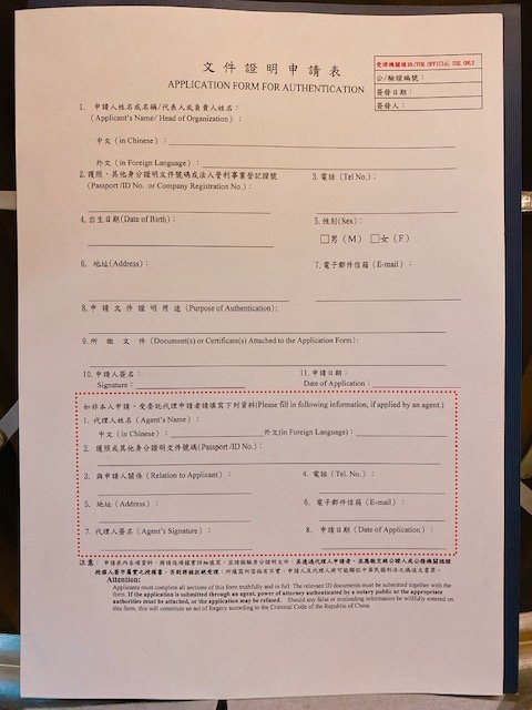- 已填妥文件證明申請表 x 1